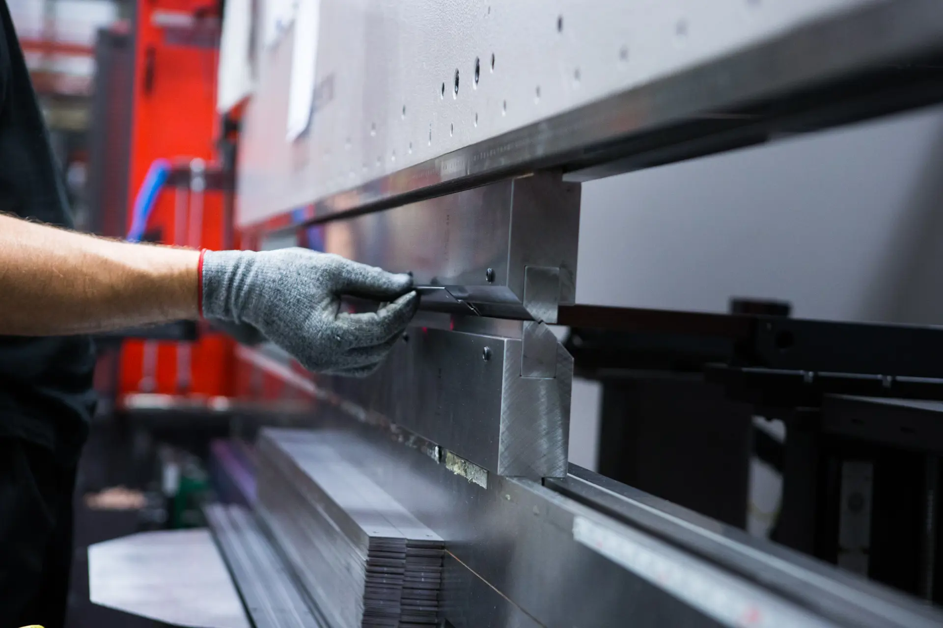 Bystronic kantpress, i denna maskin kan vi bocka komplicerade detaljer manuellt i både korta och långa serier. Maskinen har dynbord med inbyggt omslagsverktyg.